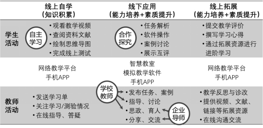 将教学流程划分为线上自学、线下应用和线上拓展三个阶段,合理分配相应的教学目标,从而有针对性的设计教学活动、提供教学资源及选择教学工具。自学阶段侧重理解、记忆(初阶思维),课堂活动强调分析、评价(高阶思维),课后延伸助力挑战、提升,形成清晰且递进式的学习路径。通过在每个阶段形成学习记录并进行过程性打分,有效调动学生的学习积极性和主动性。