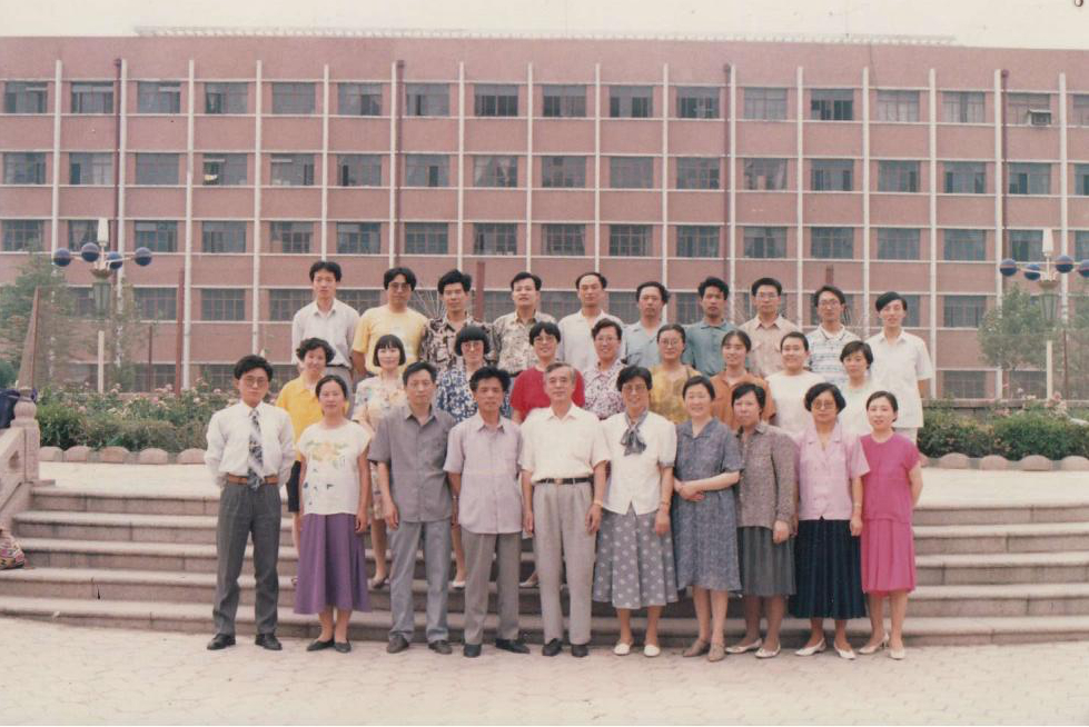 1994年原山东经济学院财政金融系教职工合影(前排左起第四为时任系党总支书记李桂祥,第六为系主任汤若岩)